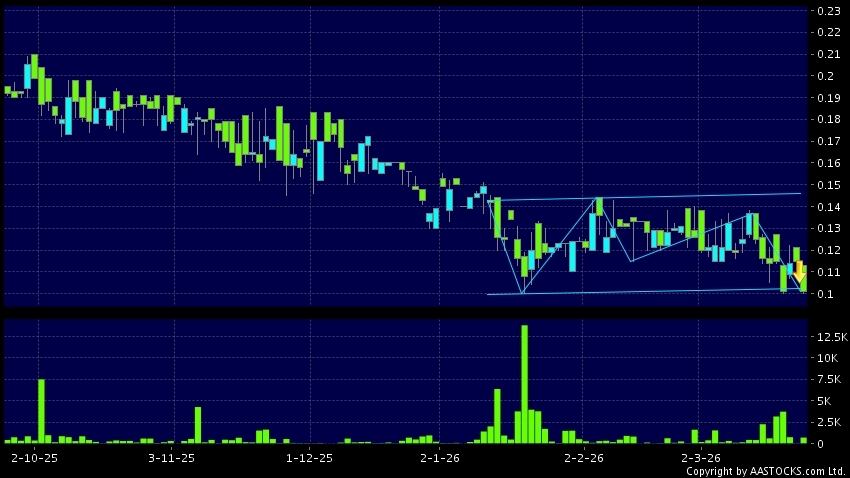 XINKONG INT CAP(00993.HK) appears a downside range breakout. Last printed at 0.101; fell 12.174%; on volume of 699.00K shares and turnover of $72.90KRecent PerformanceIn 3 days: +0...