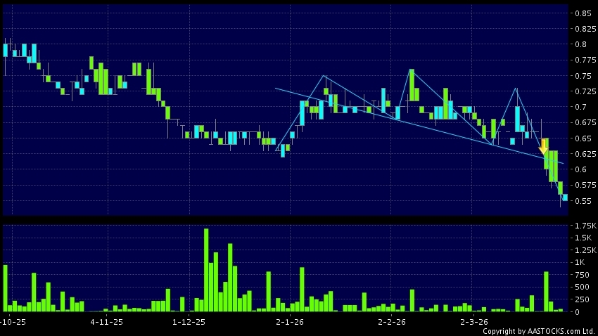 ZHONGTAIFUTURES(01461.HK) appears a downside breakout, dropped below the neckline. Last printed at 0.560; Flattish; on volume of 4.00K shares and turnover of $2.22KRecent Performan...