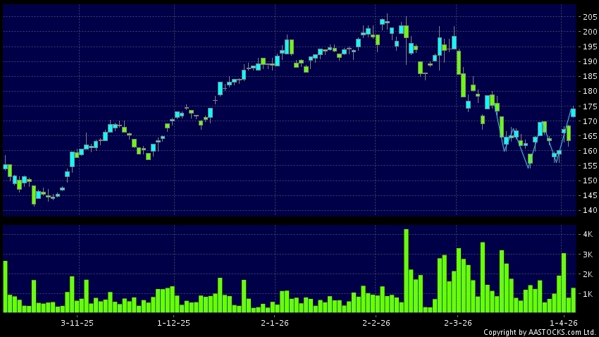 Disclaimer:The information, financial market data, quotes, charts, statistics and / or various technical analysis indicators are automatically generated based on the analyses and interpretations of publicly available information and should be used as references only at your own discretion. Such automatically generated content does not reflect the views or opinions of AASTOCKS.com Limited nor does AASTOCKS.com Limited make any guarantees to their accuracy, completeness, timeliness or correctness. You are advised to consult independent professional advice to verify pricing information or to obtain more detailed market information. Any uses of information or trades executed following the said automatically generated content are taken at your own risk for your own account.