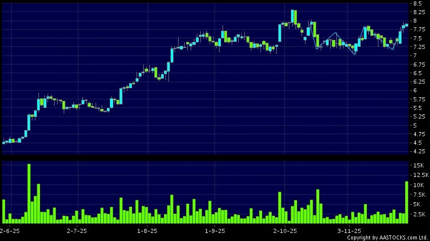 免責聲明:以上金融市場數據、報價、圖表 及/或各種技術分析指標乃根據公開資料分析和演釋自動生成的,僅作參考使用。此類自動生成的內容並不代表AASTOCKS.com Limited的立場。AASTOCKS.com Limited並不保證其準確性、完整性、實時性或者正確性。閣下應諮詢獨立專業意見,以核實定價資料或獲取更詳細的市場信息及須為所有跟隨此類自動生成的內容執行的交易或使用該內容負責。
