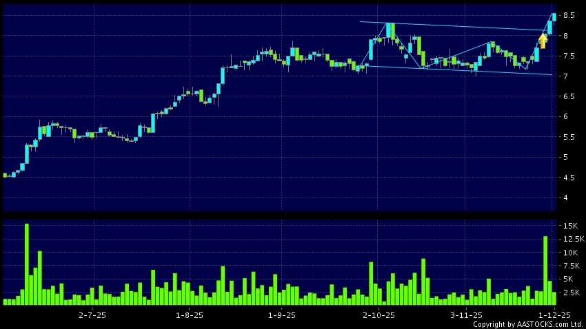 免責聲明:以上金融市場數據、報價、圖表 及/或各種技術分析指標乃根據公開資料分析和演釋自動生成的,僅作參考使用。此類自動生成的內容並不代表AASTOCKS.com Limited的立場。AASTOCKS.com Limited並不保證其準確性、完整性、實時性或者正確性。閣下應諮詢獨立專業意見,以核實定價資料或獲取更詳細的市場信息及須為所有跟隨此類自動生成的內容執行的交易或使用該內容負責。